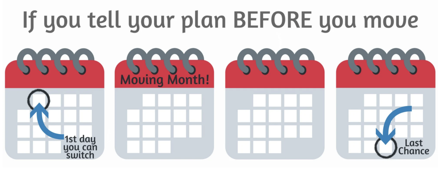 When you move, you have to switch your plans if you're on Medicare. You have a Special Election Period to switch plans. A Special Election just means that you have a unique situation that opens up a time frame where you can switch plans outside of the traditional October 15th to December 7th Annual Enrollment window.