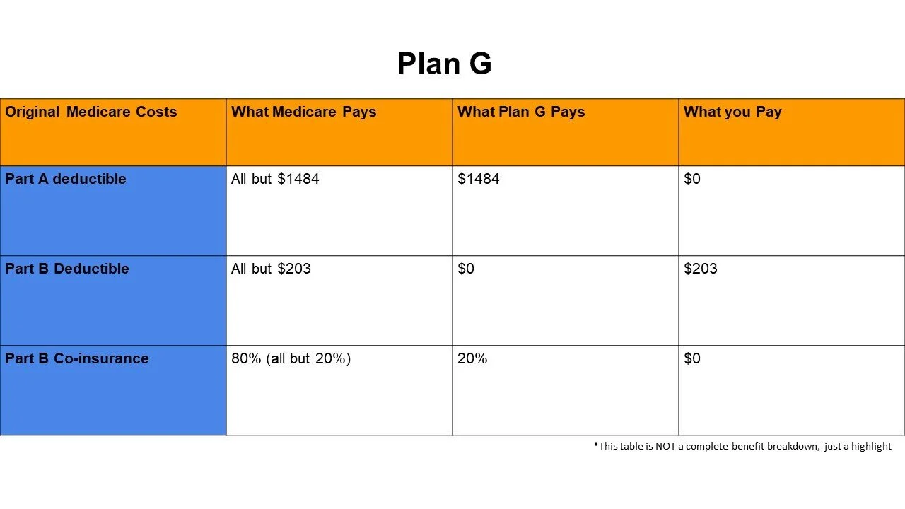 Plan G “The Plan F replacement” $$ - Plan G is another popular Supplement plan. It is very similar to Plan F and has essentially become the Plan F replacement due to the MACRA ruling mentioned above. Plan G will cover 100% of your Part A inpatient costs (up to the Medicare approved amounts). However, you are responsible for the $203 Part B annual deductible, but that’s it. Plan G then comes in to cover the 20% Part B coinsurance.